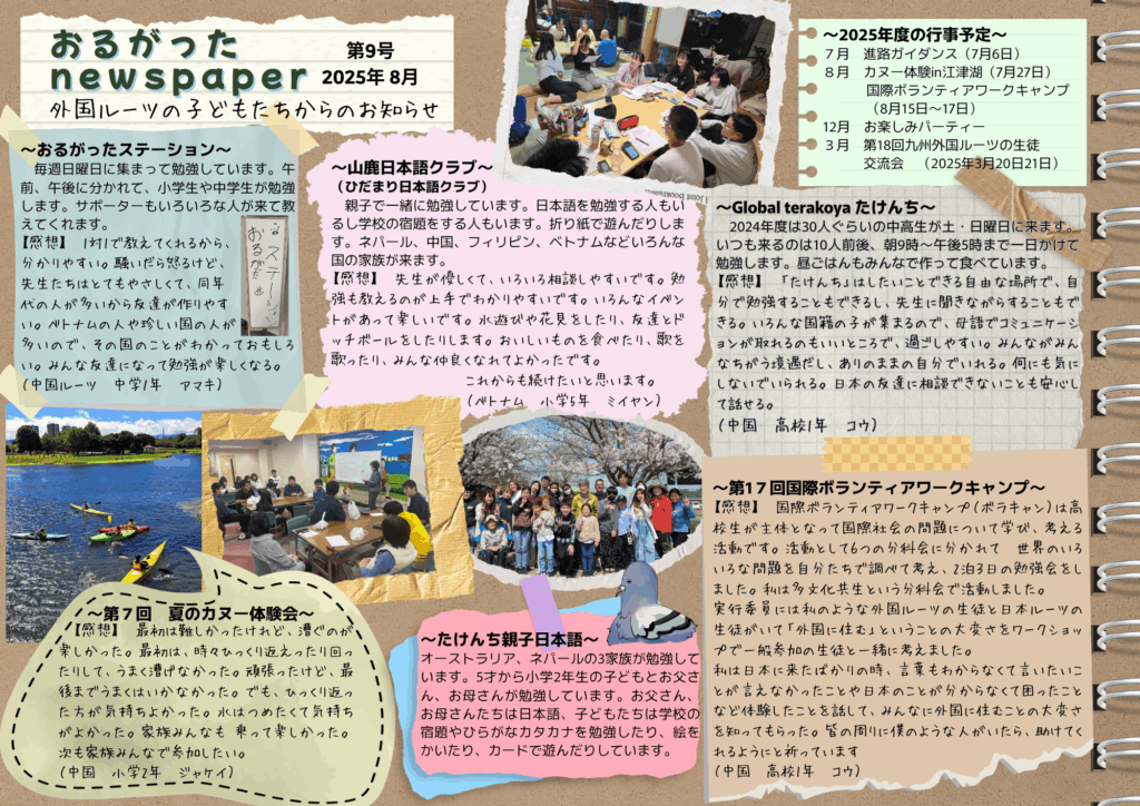 お時間あるときに、子どもたちの手作り満載の「おるがった新聞」をお楽しみください。
